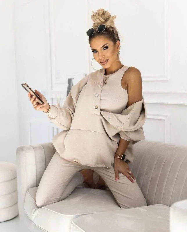 ADOPTEZ UNE ÉLÉGANCE POLYVALENTE AVEC NOTRE ENSEMBLE TROIS PIÈCES - Élégance et Confort au Quotidien